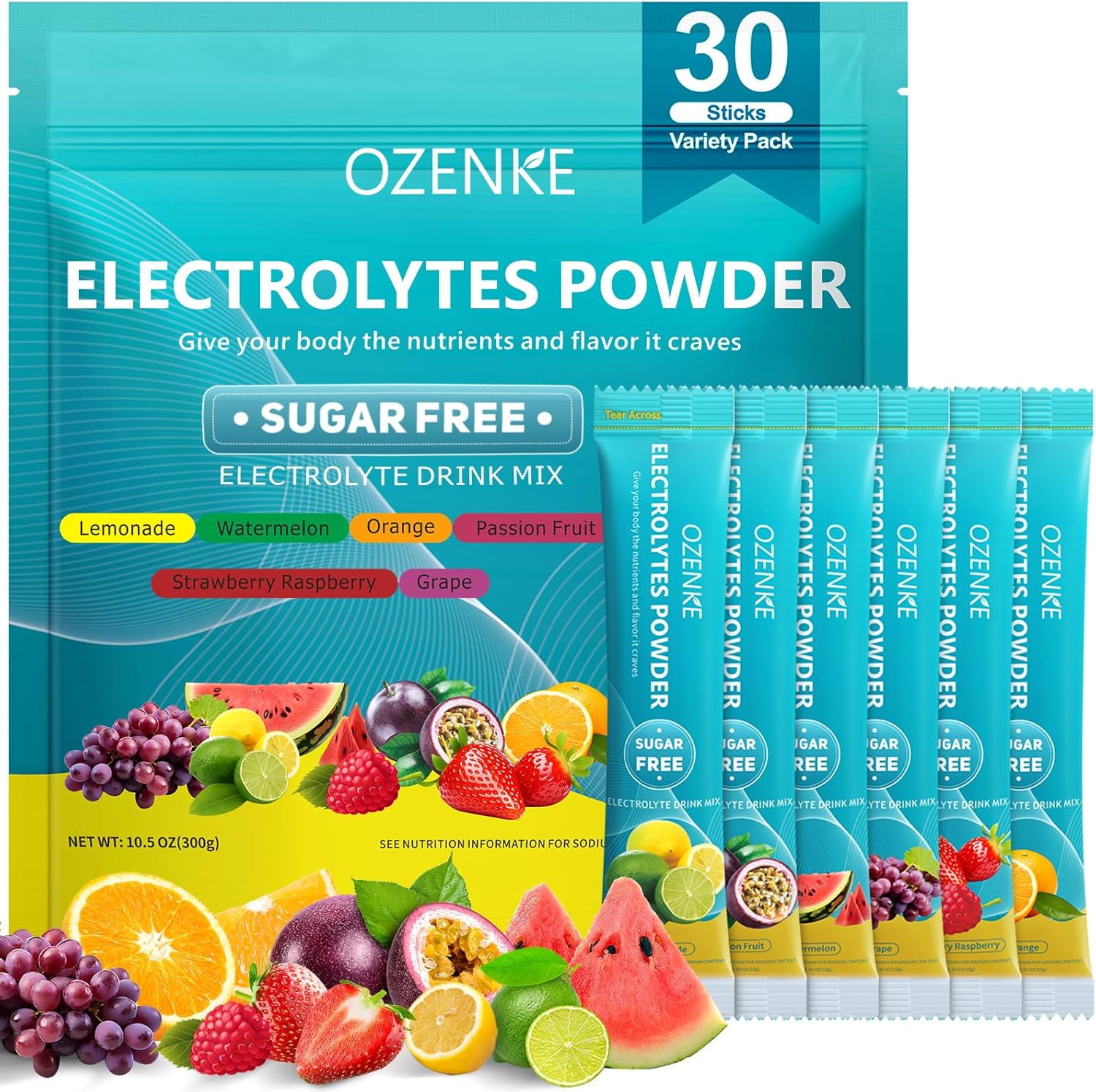 OZENKE electrolyte powder packets have a professional formula that helps to replenish lost water and electrolytes in our body quickly. It contains essential electrolytes like Potassium, Sodium, Magnesium, Zinc, and Calcium, which help maintain osmotic pressure of intracellular and extracellular fluids. Prevent dehydration due to exercise with ease!